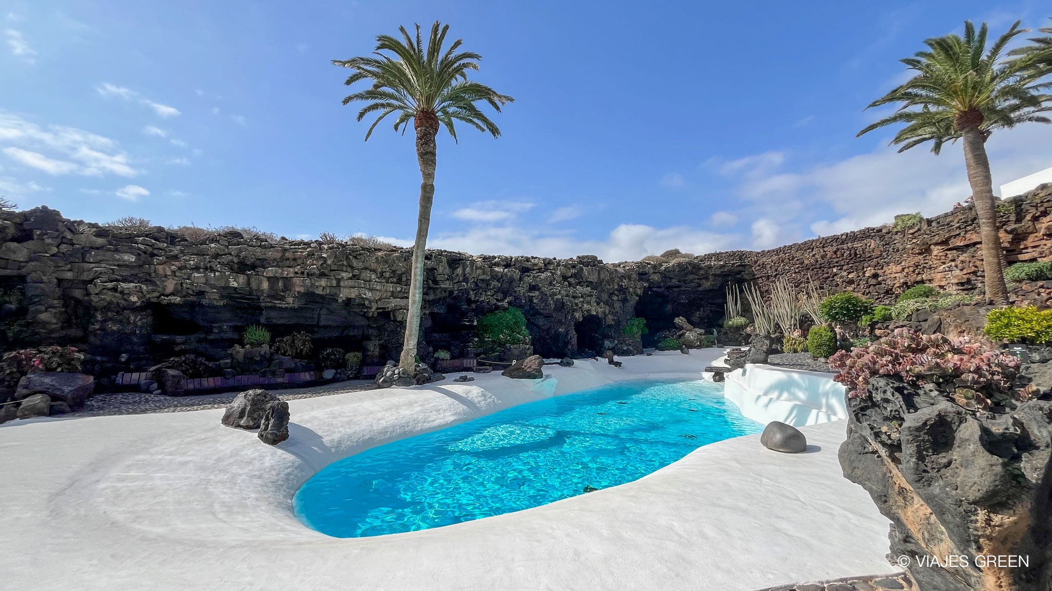 Este día lo dedicamos a visitar los Jameos del Agua, una de las obras más conocidas de César Manrique. Fue su primera creación en la isla en la década de 1960, es una instalación en la que se respira una gran creatividad, naturaleza y belleza en cada esquina. Desde que te internas en la cueva del lago donde viven cientos de cangrejos ciegos, hasta que llegas a la joya de la corona, la piscina rodeada de palmeras.